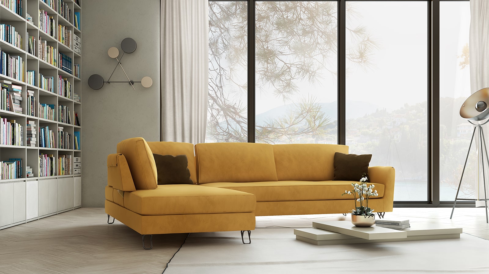 The high quality corner sofa COSI is made with wearable fabrics on the seats and backs while the mechanism gives extra interior space.