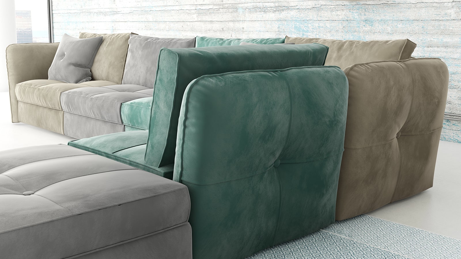 The corner sofa JOY consists of 6 pieces, with the possibility to alternate in space, giving a modern touch to your living room.