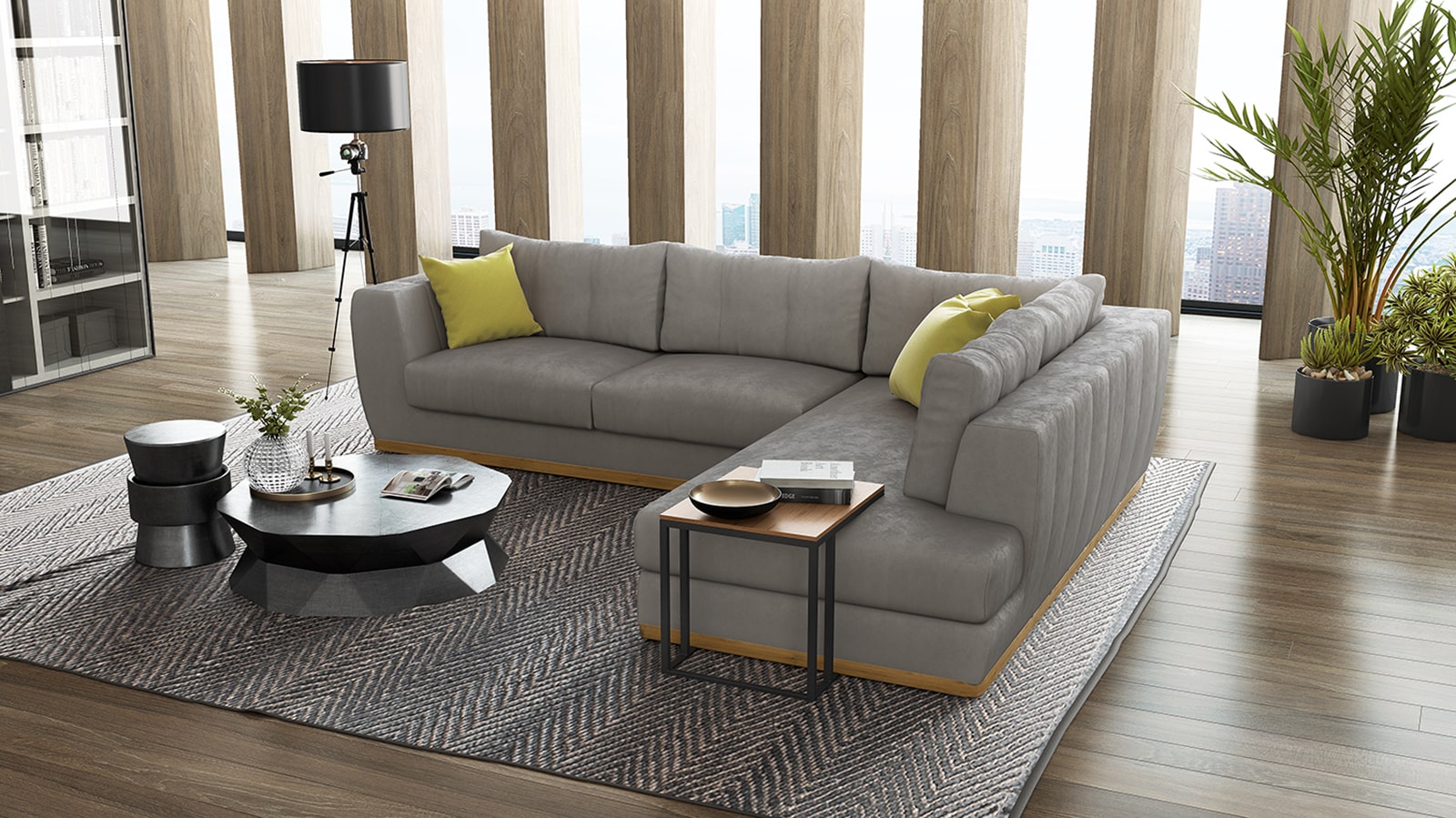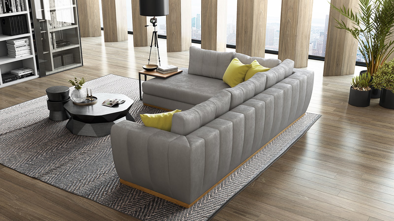 Unique, modern, corner sofa with solid wood base and delicate design on the back. The RIVIERA sofa is ideal to add a sparkle to your living room.